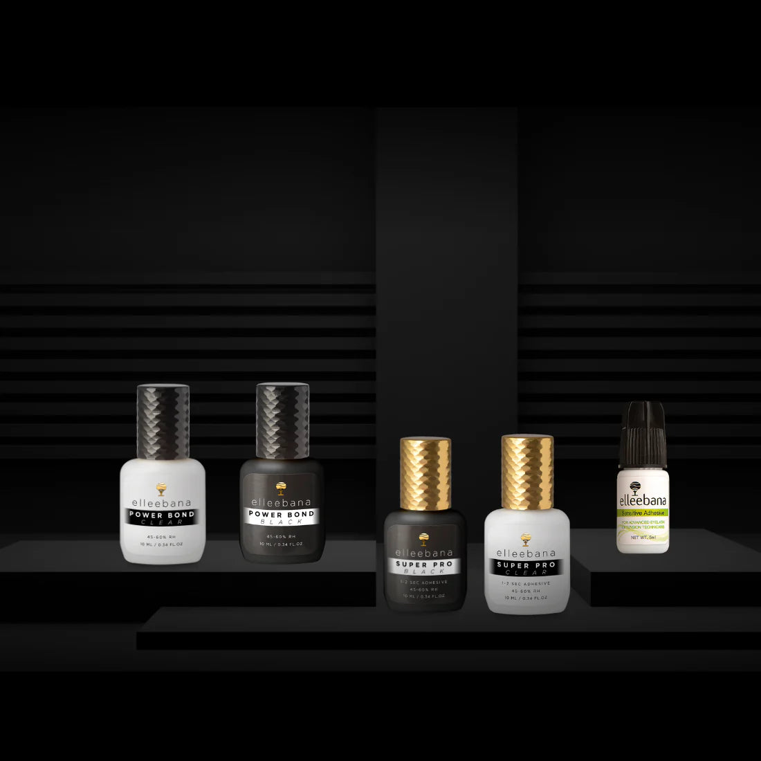 All types of adhesive in the Elleebana range are available in 5ml and 10ml sizes and have a variety of setting times that are suited to the technician’s requirements.