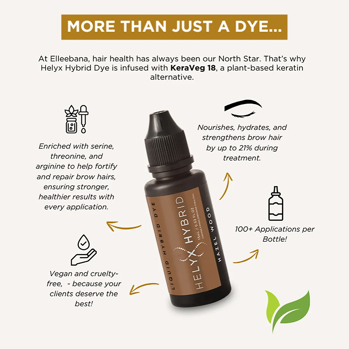 Helyx Hybrid Dye offers a brilliant alternative to tinting and since brow hair health has always been our North Star – we’ve included in our Helyx Hybrid dyes, Kera Veg 18, a plant-based keratin alternative that nourishes, hydrates, and strengthens brow hair by up to 21% during a Helyx Hybrid dye treatment. This unique formula of serene, threonine and arginine are ideal for strengthening brow hairs and restoration post chemical services.